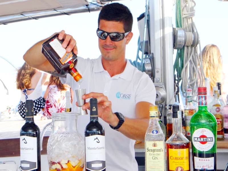 Auf dem Rückweg segeln Sie an der Küste der Bucht entlang. Die Bar an Bord, die während des gesamten Ausflugs geöffnet ist und serviert Ihnen gerne leckere Cocktails, Mixgetränke und andere alkoholische und nichtalkoholische Getränke.