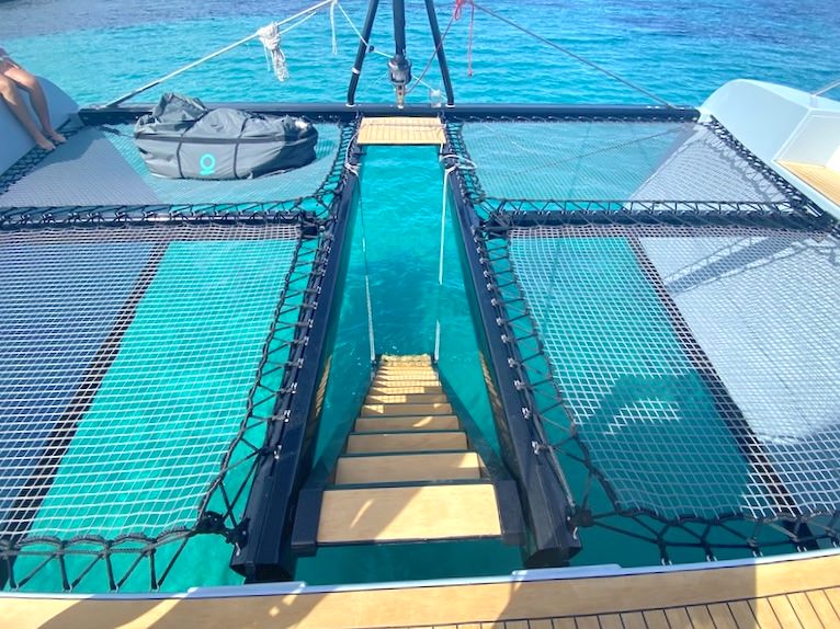 There are 2 bathing ladders: a ladder at the stern and a design ladder at the bow.